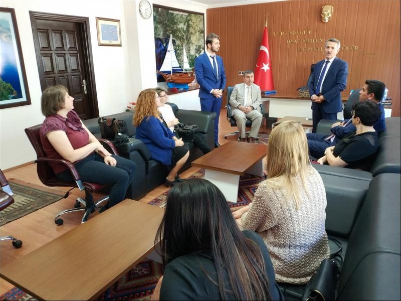 "Her Şey İyi Niyet İle Başlar" AB Erasmus+ projesi kapsamında Fransa, Polonya, Macaristan ve Makedonya heyeti ile birlikte Fethiye ilçe Milli Eğitim Müdürümüz Sayın Faruk KAYA beyefendi ve Fethiye İlçe Kaymakamı Sayın Muzaffer ŞAHİNER beyefendiye resmi ziyarette bulunduk. Yabancı heyette yer alan temsilciler kendilerini tanıtarak proje hakkında bilgi verdiler. İlçe Milli Eğitim Müdürümüz ve Kaymakamımız da ilçemiz hakkında heyete bilgi vererek, proje ile ilgili Fethiye´deki bazı istatistiki verileri paylaştılar. Milli Eğitim Müdürümüze ve Kaymakamımıza misafirperverliklerinden ve katkılarından dolayı teşekkür ederiz.
